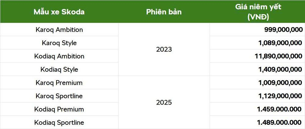 Cập nhập bảng giá xe Skoda niêm yết toàn quốc cho các phiên bản 2023 và các phiên bản 2025 mới ra mắt: